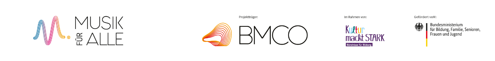 Das Projekt wird vom Bundesministerium für Bildung, Familie, Senioren, Frauen und Jugend über den Projektträger BMCO e.V. im "Musik für Alle" Programm als Teil vom gesamten Kultur Macht Stark Programm gefördert.